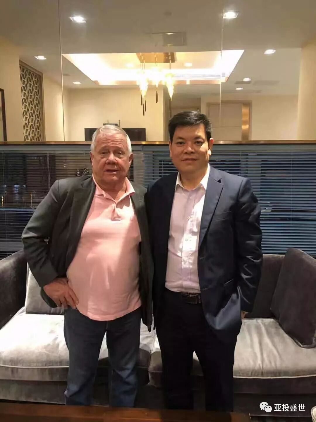 10月22日下午,亚投盛世总裁黄彪鹏先生一行人员,在深圳马可孛罗酒店拜会了国际著名投资家吉姆罗杰斯先生。